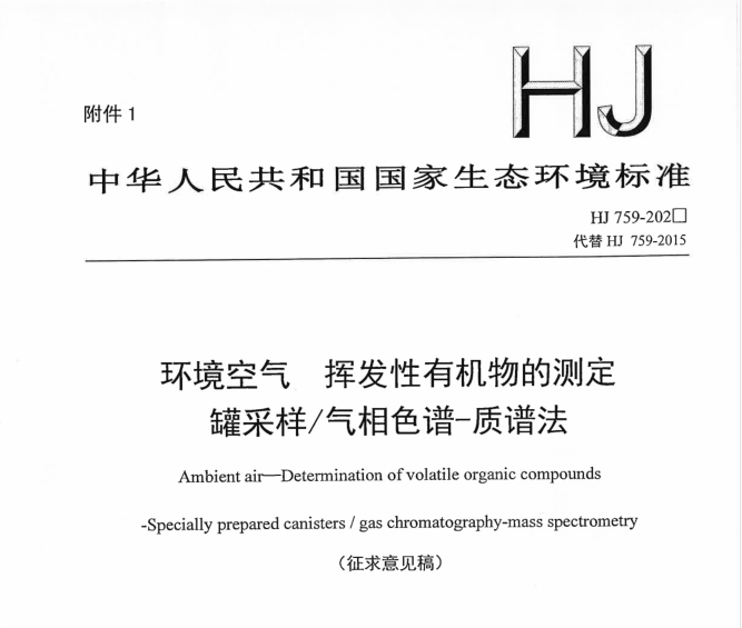 《环境空气 挥发性有机物的测定 罐采样/气相色谱-质谱法》 3月17日,生态环境部发布关于征求国家生态环境标准《环境空气挥发性有机物的测定罐采样/气相色谱-质... 更新日期:2021-03-19 下载包(1)