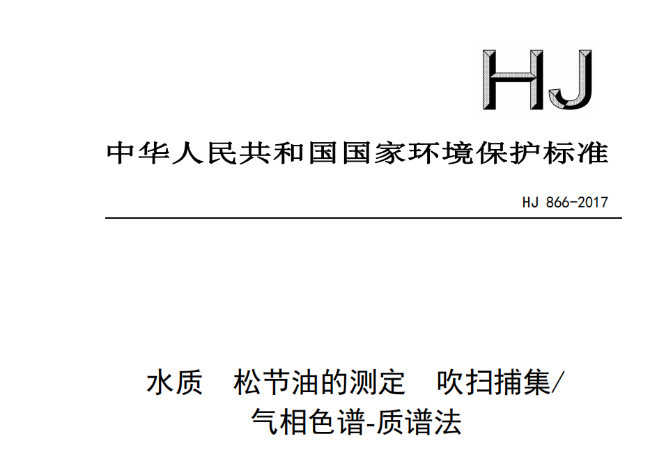 HJ 866-2017 水质 松节油的测定 吹扫捕集-气相色谱-质谱法(发布稿) 本标准规定了测定水中松节油的吹扫捕集 /气相色谱 -质谱法。 本标准适用于地表水、地下水、生活污水和... 更新日期:2020-04-01 下载包(1)