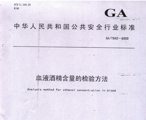 GA/T842-2009公安部血液中的酒精检测标准 本标准规定了血液酒精含量的顶空气相色谱检验方法。 本标准适用于道路交通执法活动中对人员血液中酒精(以... 更新日期:2020-01-08 下载包(1)