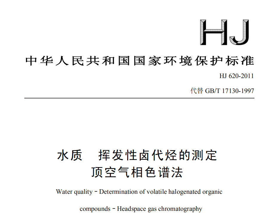 HJ 620-2011 水质 挥发性卤代烃的测定 顶空气相色谱法 HJ 620-2011 水质 挥发性卤代烃的测定 顶空气相色谱法本标准规定了测定水中挥发性卤代烃的顶... 更新日期:2020-05-06 下载包(1)