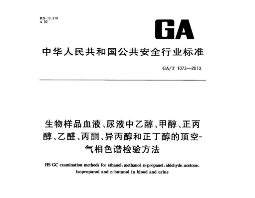 GAT 1073-2013生物样品血液、尿液中乙醇、甲醇、正丙醇、乙醛、丙酮、异丙酮和正丁醇的顶空-气相色谱检验法 GAT 1073-2013生物样品血液、尿液中乙醇、甲醇、正丙醇、乙醛、丙酮、异丙酮和正丁醇的顶空-... 更新日期:2020-05-09 下载包(1)