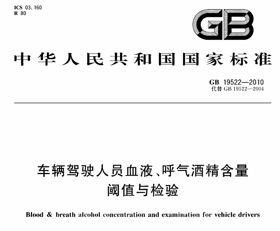 GB 19522-2010 车辆驾驶人员血液、呼气酒精含量阈值与检验 中华人民共和国国家标准——车辆驾驶人员血液、呼气酒精含量阈值与检验标准(由国家公安部提出,国家质量监... 更新日期:2020-05-09 下载包(1)