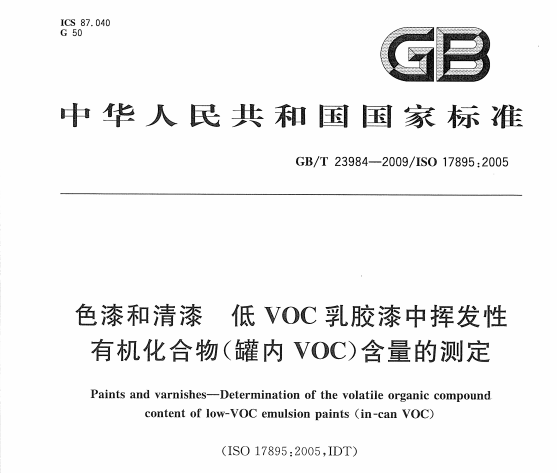 GB/T 23985-2009 色漆和清漆 挥发性有机化合物(VOC)含量的测定 差值法 GB/T 23985-2009 色漆和清漆 挥发性有机化合物(VOC)含量的测定 差值法1 范围 ... 更新日期:2020-05-09 下载包(1)