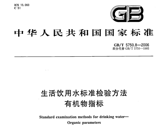 GBT 5750.8-2006 生活饮用水标准检验方法 有机物指标 适用范围本标准规定了用填充柱气相色谱法测定生活饮用水及其水源水中三氯甲烷、四氯化碳、三氯乙烯、二氯一... 更新日期:2020-05-09 下载包(1)
